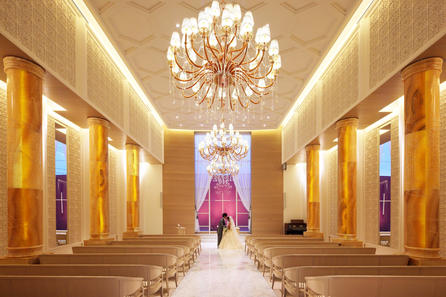 実際の結婚式場で撮影できる、まるで本物の挙式を迎えたかのような美しいフォトウェディング
